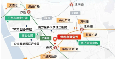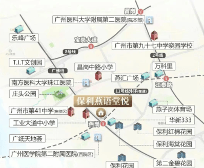 保利燕语堂悦位于海珠区工业大道中的燕岗地铁站旁,堪称市区的 “六边形战士” 项目。项目双地铁上盖,距离门口 200 米处便是燕岗站,11 号线串联起广州核心区域,而广佛线更是能直达佛山,让您轻松实现跨城出行。无论是通勤珠江新城、琶洲等商务核心区,还是前往佛山工作、生活,都高效便捷。同时,项目紧邻工业大道主干道,向北可接昌岗中路内环路,向南 5 分钟便能接驳新滘西路、环城高速,交通路网发达,20 分钟内即可快速抵达广州核心区。家门口的纸厂公交站举步即达,为您提供了多样化的出行选择。