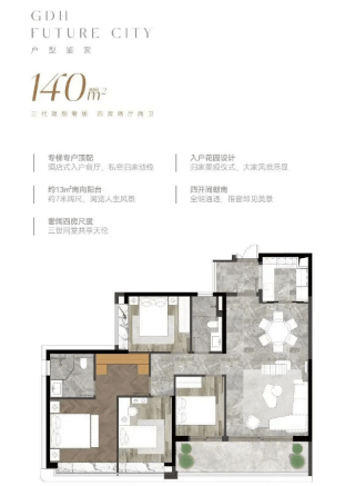 粤海·云港城提供了多种户型选择,包括建面约140-264平方米的现代美学大宅以及建面约129-148平方米的都芯轻奢私邸。所有户型均采用了公建化外立面设计,拥有270°IMAX环幕观景视野,超20米连续采光面,户户均配有大尺度面宽阳台,地上地下双落客大堂设计,呈现出星级酒店式的奢华感。