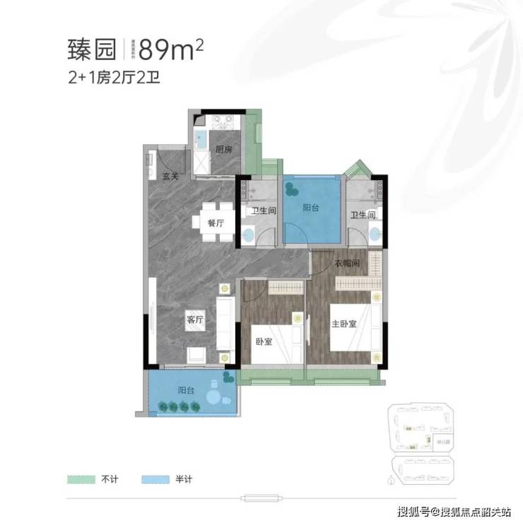 实测得房率85%:客餐厅连接5.2米景观阳台,主卧带步入式衣帽间,全屋飘窗设计。