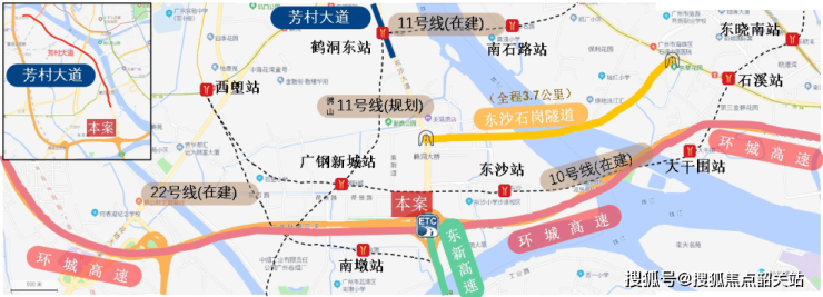 22号线南漖站(在建)直线850米(步行10分钟),2026年通车后连接南沙、番禺、广州南站;