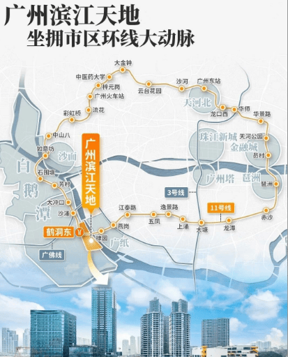 广州·滨江天地·尚滨道坐拥多维便捷交通路网,以TOD站城一体化模式,串联城市各个核心区域。地铁方面,项目距11号线鹤洞东站直线距离不到200米,11号线作为广州首条环线,可快速连通珠金琶CBD,同时3站可接驳22号线,未来南延段可直达深圳;规划中的佛山地铁11号线紧挨项目南侧设站,进一步完善跨城交通网络。项目还规划水上巴士,通达珠江两岸,搭配周边成熟路网,实现轨道、公交、自驾、水上交通多维联动,日常通勤与跨城出行均十分便捷,可快速抵达老西关永庆坊、大湾区艺术中心等区域。