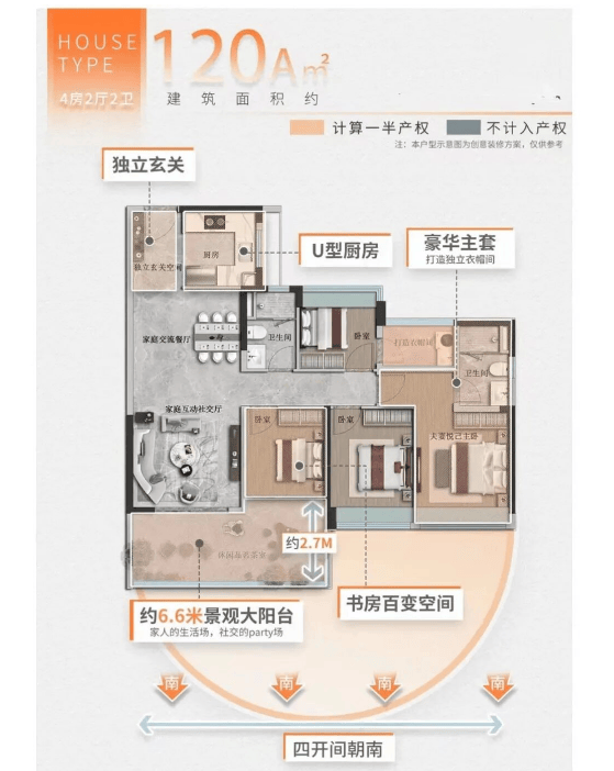 项目主力户型为98㎡三房、120㎡四房(A/B两种格局)及140㎡IMAX级全景大宅,均为广州新规产品,使用率达100%。98㎡户型配备6.5米景观阳台,书房改造后进深达6米,实用性媲美传统120㎡产品;120㎡A户型可打通客厅与卧室形成大平层式社交空间,B户型则带入户花园,四房尺度均衡;140㎡户型拥有9.4米跑道式阳台、南北对流格局及超大主卧套房,空间感超越部分170㎡产品。大面积玻璃幕墙设计将山湖美景引入室内,真正实现“把自然搬进家里”的居住理想。