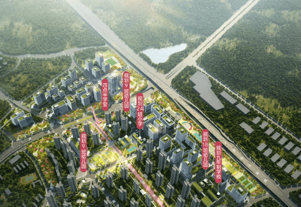 项目内设有一所24班的小学和一所45班的九年一贯制学校,并配建了4所幼儿园,涵盖从幼儿园到高中的约15年全龄教育资源。值得一提的是,该项目已确定由湖南师范大学办学(12年制),其附属中学在全国百强高中排行榜中位列第11名,远超广州本地家长心中的“神学院”华附。