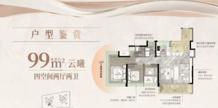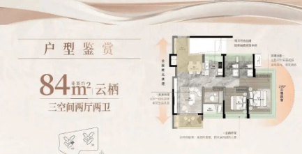 嘉悦云启住宅产品以功能性与空间利用率为设计重点。项目主力户型包括建面约88平方米、105平方米以及120平方米等多种产品类型。88平方米户型采用四开间朝南设计,南向采光面达到约13米。客厅连接景观阳台,结合270度转角飘窗,使室内空间更加开阔。入户玄关与U型厨房形成合理生活动线,提高日常使用效率。105平方米户型为四室两厅两卫设计,通过4至4.5米面宽布局,使多个功能空间朝南。主卧配置独立卫生间与衣帽间,满足家庭私密居住需求。120平方米户型则采用双套房设计,同时配置中西双厨布局,使家庭生活更加便利。客厅面宽约6.8米,与南向景观阳台相连接,形成开阔的观景空间。所有住宅产品均按照广州2024年住宅设计新规标准进行设计,通过优化墙体结构与空间布局提升实际使用面积。部分户型使用率接近100%,空间利用效率较高。住宅整体采用精装修交付标准,配置品牌厨房设备、高品质卫浴设施以及环保装修材料,为业主提供舒适便捷的居住体验。