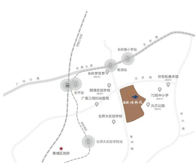 项目距离地铁21号线长平站直线约800米,步行10分钟左右能到;另外,小区东侧约400米就是有轨电车1号线羌洞站,1站就能换乘地铁。早高峰从这里打车到科学城核心区,实测平均25分钟。周边主干道密集,香雪大道、开创大道、广汕路都在1公里范围内,自驾通勤选择多,高峰期虽有缓行但不至于“堵死”。