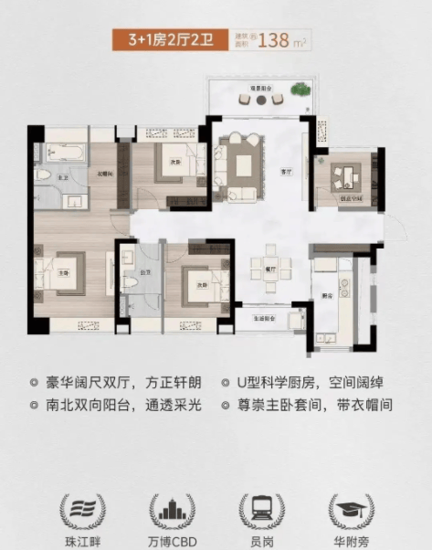 稀缺性:一线江景+双地铁+华附学区,三者兼备的项目在万博仅此一盘;
