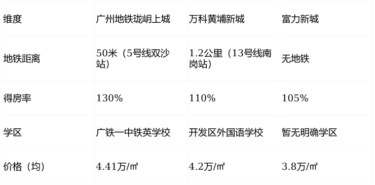 竞品A(万科黄埔新城):距离地铁13号线南岗站1.2公里,需接驳公交;