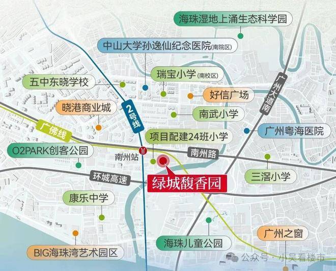 广州中心城区的居住逻辑正在发生结构性变化,海珠区作为广州传统核心区之一,始终承担着城市人居升级的样本使命。绿城馥香园正是在这样的城市背景下诞生的品质住宅项目。项目由绿城体系打造,绿城系产品长期以来以精细化建造标准、园林景观体系以及高品质物业服务体系著称,在一线城市改善型住宅市场中拥有稳定的品牌信任度。项目坐落于海珠西南洲板块核心位置,属于广州中轴南延线生活带的重要组成部分。该区域交通网络成熟,生活气息浓厚,同时又能够保持相对舒适的居住密度与社区尺度感。