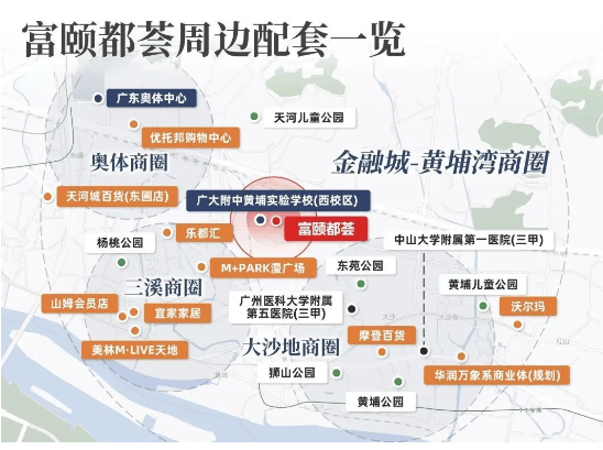 教育配套是项目 “核心竞争力”:自带广州开发区人才教育集团知贤幼儿园(公办 18 班,已开学),配建 84 班九年一贯制公办学校(36 班小学 + 48 班初中,黄广附体系)。该校小学仅对口富颐都荟招生,小升初对口直升,生源纯粹,避免 “多盘抢学位” 问题;对比黄广附东校区(24 班,18 所小学摇号),硬件更优、学位更充足,教育确定性拉满,业主子女可享 “3-15 岁” 全龄优质教育,解决家长学区焦虑。商业方面,自带 26 万㎡大型商业综合体(累计 50 万㎡,超天河城 3 倍),周边有优托邦、美林 M・LIVE 天地、宜家、山姆等 8 大商业广场,日常购物、休闲娱乐无忧;医疗上,3 公里内有中山大学附属第一医院(三甲)、广州医科大学附属第五医院(三甲),健康保障充足;生态上,周边天河儿童公园、杨桃公园等 4 大公园环绕,社区内有 720 米健康跑道、双阳光草坪,生活与生态需求全满足。