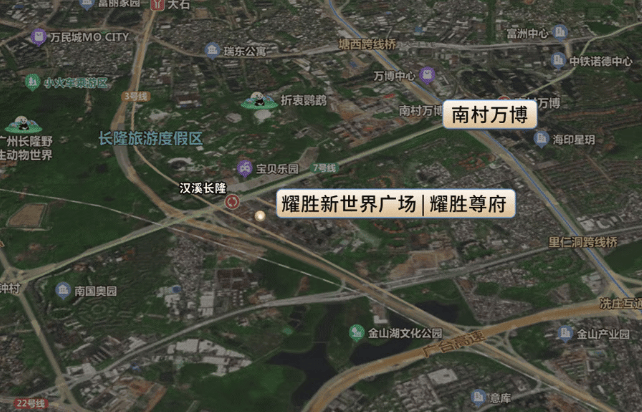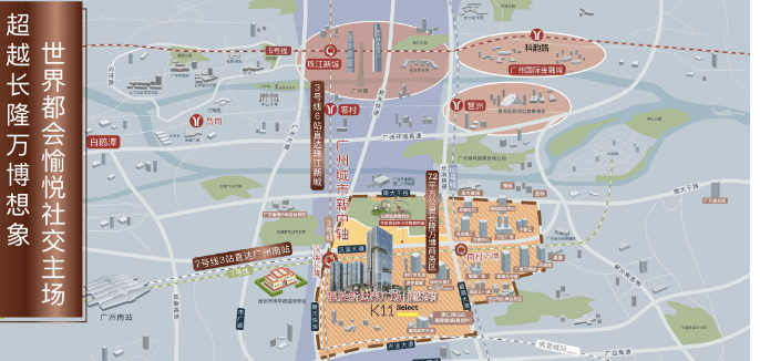 项目坐落于番禺长隆万博商圈核心,地处新光快速与汉溪大道交汇处,是串联珠江新城、广州南站、白云机场的枢纽节点。
