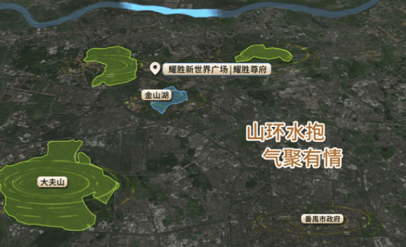 生态资源:背靠大夫山,直面珠江支流三支香水道,社区内规划约3万㎡园艺广场,外部毗邻长隆旅游度假区、大夫山森林公园,实现“都市繁华”与“自然休闲”的平衡。