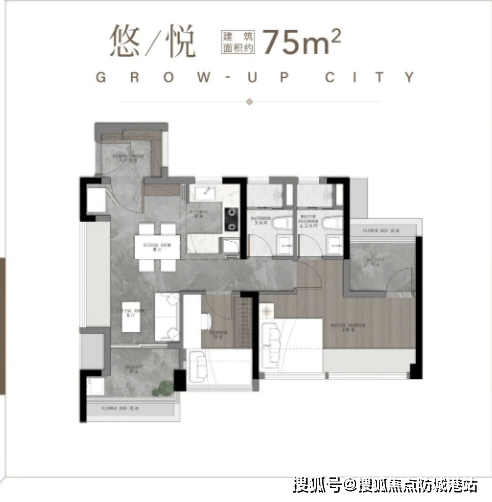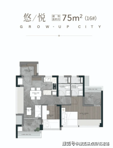 1. 75㎡(一期尾货):三空间两卫,年轻人主城上车首选户型,四开间朝南,全明转角玄关,开放式厨房设计,搭配开阔景观阳台,南北对流主套与衣帽间,空间利用率高,布局合理,首付30万左右即可拿下,性价比拉满,适合首次置业的年轻人。