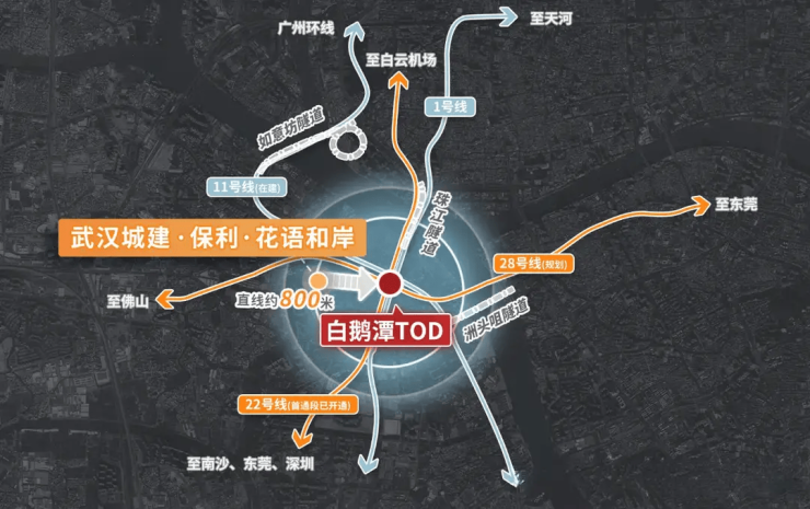 项目步行约800米即达地铁1号线芳村站。该站未来将成为1号线、11号线(已开通)、22号线(建设中)、28号线(规划中)四线换乘超级枢纽,无需换乘即可直达广州南站、广州东站、珠江新城、白云机场等核心节点。