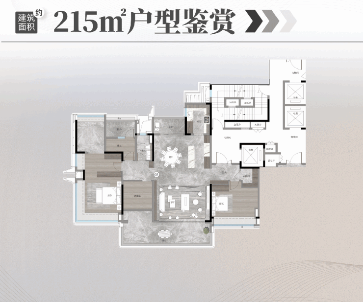 279㎡户型:五房设计,配备16米南向采光面、8.5米景观阳台及LDKB大方厅,获“2025中国豪宅空间设计金奖”。
