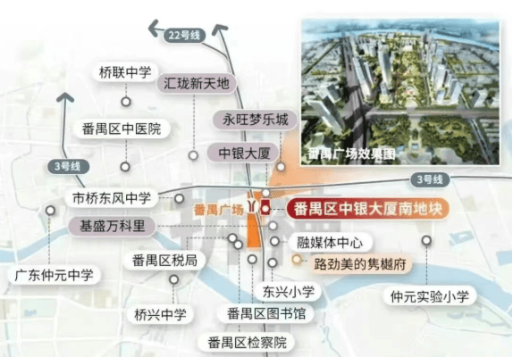 在番禺这片承载着千年岭南文脉与现代都市活力的土地上,一个全新的高端人居标杆正冉冉升起——绿城中国于2024年12月17日摘得的番禺广场核心地块,即将以“绿城·番禺广场项目”之名,为广州南拓战略下的品质生活注入全新定义。项目坐落于番禺区市桥街中银大厦南侧,直线距离番禺区政府仅约200米,真正意义上立于城市行政中枢、文化高地与交通枢纽的黄金交汇点。