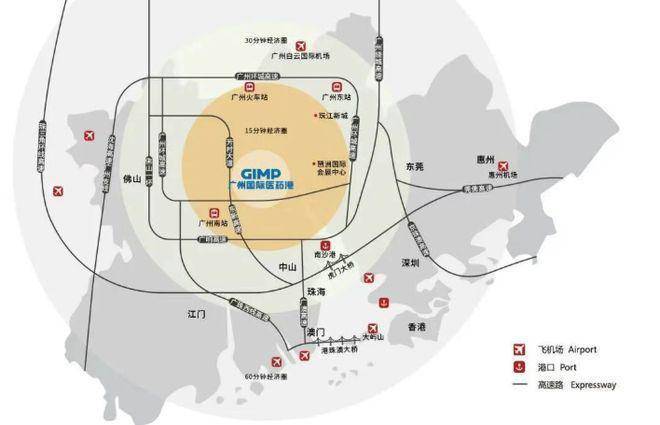 广州国际医药港——粤港澳大湾区国际智慧健康城,位于广州市白鹅潭商圈的珠江江畔。总占地面积达到73公顷,计容总建筑面积为150万平方米,总投资逾200亿元人民币。该项目不仅是广东省2018年的重点建设项目,也是广州市“十三五”规划的重点项目之一,由中国日化龙头企业立白集团控股主导建设。