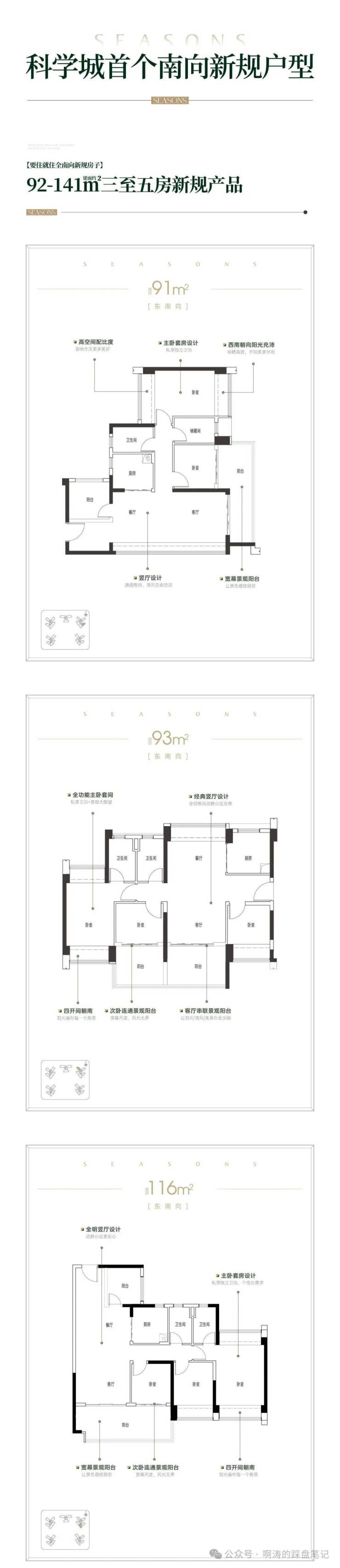 产品解析:92-141㎡全南向新规户型,实用率最高达118%