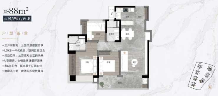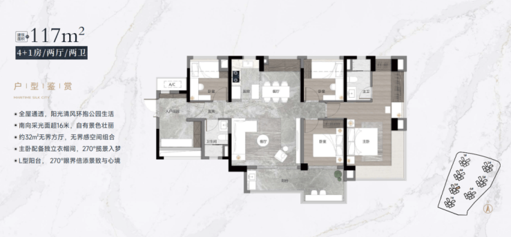 目前在售的阅山组团主打78–121㎡三至四房,使用率超100%,这在广州新房市场并不多见。以78㎡三房两卫为例,南向主卧带飘窗,次卧与书房灵活分隔,两个卫生间避免早晚高峰“抢位”尴尬;88㎡户型则配建约10㎡连体阳台,晾晒、种花、小憩都能兼顾;107㎡四房更是板块内400万内少有的改善选择,主卧套房设计、U型厨房动线合理,适合二胎家庭或需要居家办公的人群。看样板间时,销售没急着讲“奢阔”,而是指着收纳柜说:“这里刚好能放下婴儿车”,这种细节反而更让人安心。