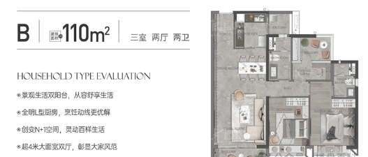 户型三:建面约143㎡四房两厅三卫(进阶改善)。该户型为进阶改善型户型,空间宽敞,布局合理,四房三卫设计,满足多人口家庭的居住需求,同时提升居住的私密性与便捷度。户型采用大横厅设计,客厅与餐厅相连,搭配超大落地窗,采光通风极佳,视野开阔,可直观江景与园林景观,营造出大气舒适的居住氛围;主卧套房设计,空间宽敞,配备独立卫生间、步入式衣帽间与超大飘窗,私密性强,居住舒适度极高,飘窗可改造为休闲区,享受惬意时光;两个次卧配备独立卫生间,方便家人使用,提升居住便捷度,另一个次卧可作为书房或客房,灵活实用;厨房采用U型设计,配备中岛台,操作空间充足,可满足多人同时烹饪,同时与餐厅相邻,方便日常用餐与清洁;此外,户型还配备独立玄关,提升归家仪式感,同时可作为储物空间,摆放鞋柜、杂物等,提升空间利用率。该户型注重居住品质与舒适度,适合追求高品质生活的改善型家庭。