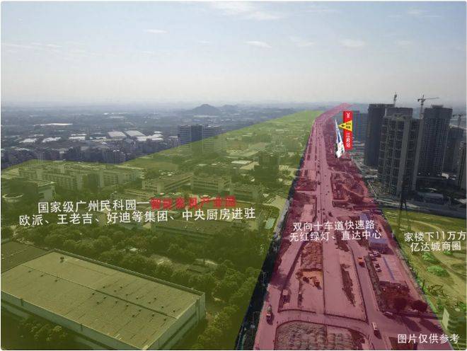 中铁诺德阅泷肩负央企使命,落子江高镇,助力城市中心转移与再造。毗邻千亿民科园,企业云集。双线地铁动工、交通要道即将通车,超 11 万方亿达城封顶等,核心配套不断兑现,江高融入广州中心 30 分钟生活圈,价值潜力无限,未来可期。