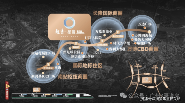 广州南站·越秀星寰TOD坐落于番禺区钟村街道,地处广州南站核心商务区,北接汉溪长隆,南邻大夫山森林公园,东连万博CBD,西望佛山三龙湾,是粤港澳大湾区“黄金内湾”的重要节点。