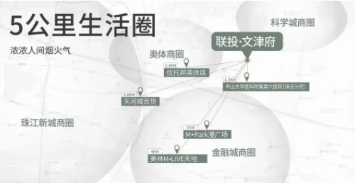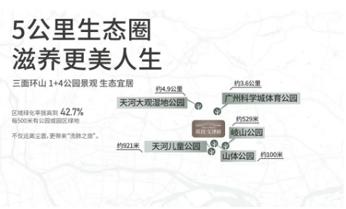 公园环绕:外揽“1+4公园”,包括山体公园、天河区儿童公园、岐山公园等,形成良好的生态环境。