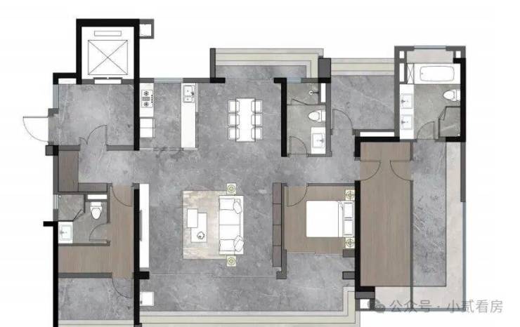 约170㎡航母大平层,LDKG世界会客厅,南北通透,层大人物的生活主场,中西双厨配置,烹饪奢华生活,豪华双套卧,主卧270度飘窗配尊崇衣帽间及酒店式双台盆