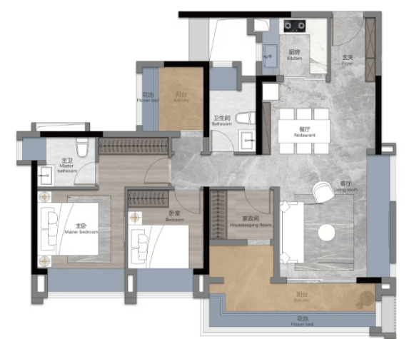 119㎡四房两厅两卫:南望园林,北望白云湖,户户有景更舒适,全景主卧套房。