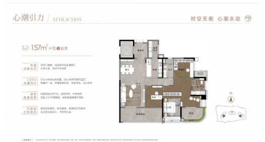 答:户型为 157-257㎡大平层,涵盖 157㎡、196㎡、203㎡、253㎡、257㎡,得房率达 100%,配备独立入户电梯厅,空间利用率高。