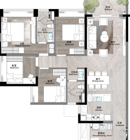 珠江天郦户型设计融入极致空间巧思,经过反复打磨优化,实现实用功能与高端格调的完美统一,最大化提升空间利用率与居住体验。全系户型采用 LDK 一体化设计,打破客厅、餐厅、厨房的空间壁垒,形成无界联动的社交空间,既提升了空间通透感与视觉尺度,又让家人互动更亲密,满足家庭聚餐、朋友聚会等多元场景,让家多出实用空间。户型内部采用动静分区、干湿分离科学布局,公共活动区与私密休息区清晰划分,互不干扰,兼顾生活实用性与私密性。129㎡户型打造实用家政空间,满足日常收纳与家务需求;140㎡户型配备隐藏式收纳系统,高效利用每一寸空间,收纳家庭杂物,保持室内整洁;180㎡户型设计独立家政间,一站式洗涤动线,让生活井井有条。厨房采用开放式或实用布局,预留充足操作空间,满足烹饪需求;卫生间干湿分离,提升使用效率与整洁度。主卧均为奢阔套房设计,配备独立卫浴、衣帽间,部分户型打造双洗手台,增添生活仪式感。每一处空间设计都精雕细琢,在保障实用功能的同时,彰显高端居住格调,完美契合高端改善人群的品质追求。