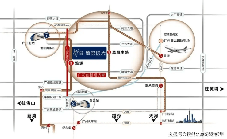 项目位于白云区广从公路与北太路交汇处,东接白云新城核心区,西连知识城,南靠白云湖数字科技城,北望从化生态区。根据《广州市国土空间总体规划(2021-2035)》,该区域被定位为“主城区北部综合服务中心”,承担疏解中心城区人口、承接产业外溢的功能。