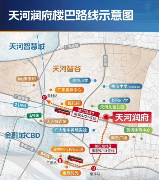 定制公交线路:两条定制路线直达奥体中心和鱼珠商圈,实现3站金融城,7站珠江新城。