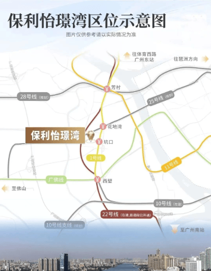保利怡璟湾不仅以其独特的设计理念著称,更因地理位置优越而备受瞩目。距离地铁1号线坑口站仅约600米,步行即可轻松到达,通过便捷的轨道交通网络,居民可以迅速抵达市中心及各大商圈。此外,项目周边有多条公交线路,自驾出行也十分方便,可快速接驳环城高速、广花高速等主要道路,确保了出行的高效便捷。教育资源丰富,包括康有为纪念小学、真光中学等多所知名学校环绕,为业主子女提供了良好的学习环境和发展机会。同时,40万㎡四大滨水商业街区与周边成熟商圈共同构成了完善的商业配套,满足了居民日常生活的需要。