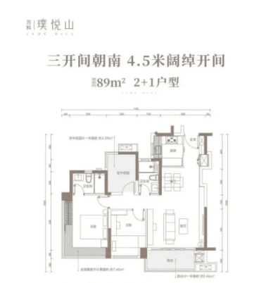 89平方米户型为宽景三房设计,客厅面宽约4.5米,使客厅空间更加开阔。户型在收纳空间设计方面进行了细致规划,从入户玄关到阳台设置多功能储物空间,使家庭生活更加有序。