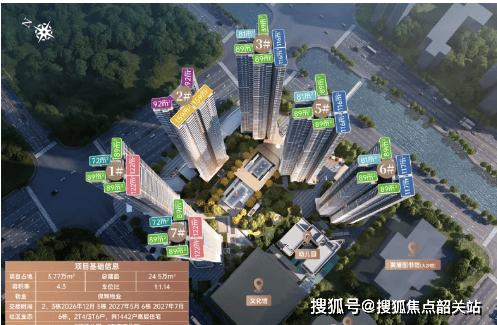 🏙️ 规划规模:总占地约 3.77 万方,总建面约 24.52 万方,容积率 4.3,绿化率 12%,规划 6 栋 47 层住宅(含 1 栋文化馆、1 所 9 班幼儿园),总户数 1448 户,车位比 1:1.1(1648 个车位)。项目采用围合式布局,确保多数楼栋采光无遮挡,同时打造超 18 米雅奢入口、7 米酒店式挑高入户与下沉式会所,居住品质对标高端改善社区,满足刚需家庭对生活质感的追求。