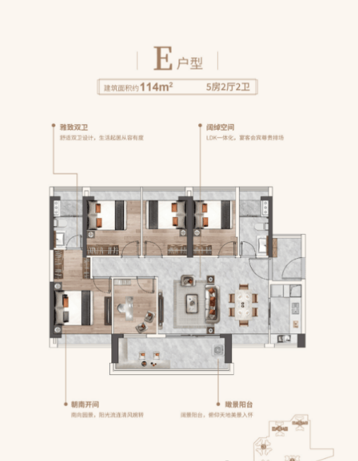 建面约114㎡ 五房两厅两卫