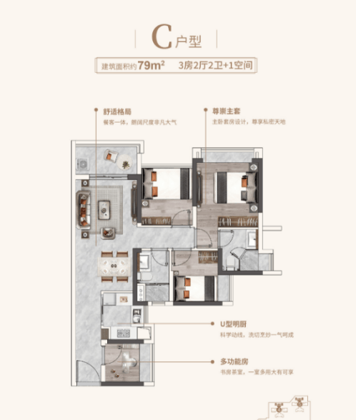 主卧套房+双卫设计,提升生活便利度;
