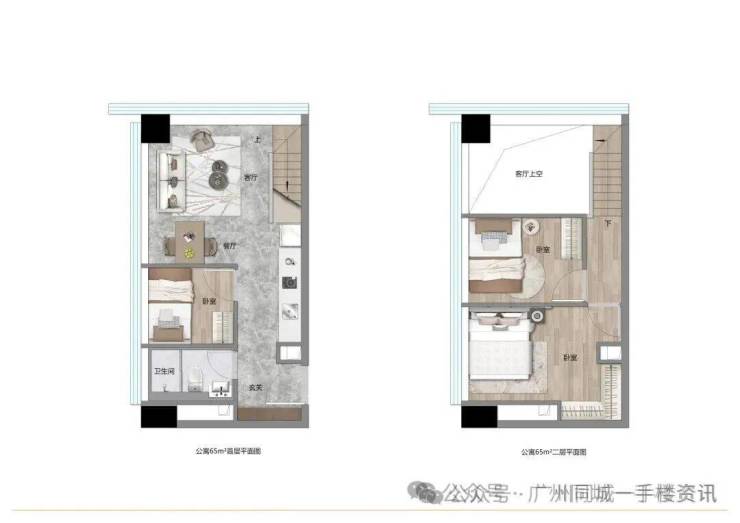 另外,建面约49平、65平的户型,设计同样可圈可点。