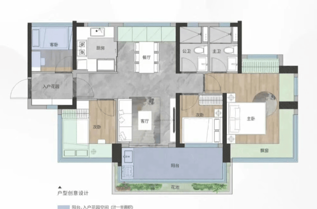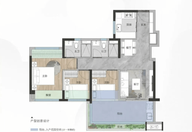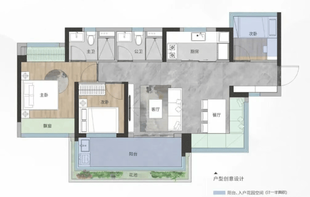 94㎡:四房两厅两卫,大户型空间尺度,满足家庭成长需求。