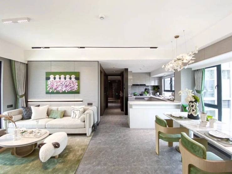 你可以参考样板房,做一个全景可开合式厨房,搭配岛台,让下厨成为一家人感情交流的绝佳场所;也可以拿掉岛台,装一扇折叠推拉门,做饭的同时,也能盯着玩耍的孩子。