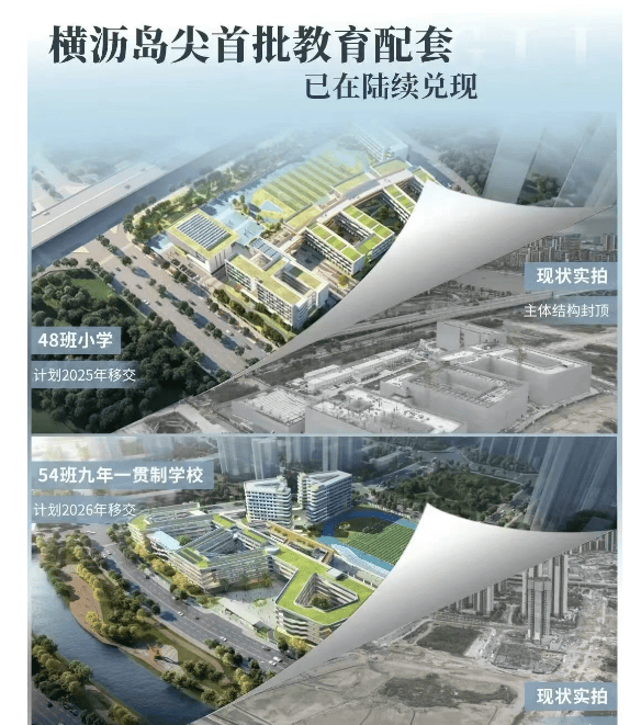 教育配套方面,招商湾区1872优势显著。项目距离在建的54班九年一贯制学校仅约500米,该学校预计2026年投入使用;另有一所48班小学将于2025年建成。横沥岛整体规划包括3所小学、3所九年制学校、1所十二年一贯制学校及1所国际学校,教育资源密集且层级丰富。随着南沙引进优质师资与名校合作机制推进,未来片区教育质量有望快速提升。对于重视子女成长环境的家庭而言,家门口的优质学位资源不仅节省通勤时间,更为孩子提供稳定、连贯的学习路径。