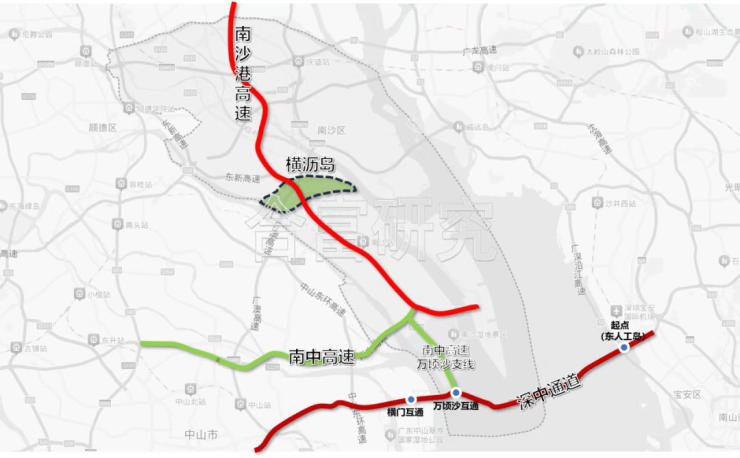 项目距地铁18号线横沥站仅约400米,步行5分钟内可达,是横沥岛少有的真正地铁上盖级住宅。18号线已开通运营,30分钟内直达珠江新城、琶洲、万博等核心商务区,极大提升通勤效率。更值得关注的是,横沥站未来将成为18号线、15号线与NS2线三线换乘枢纽,而横沥东站则汇聚广中珠澳高铁、NS1线与NS2线,形成湾区级交通节点。随着深中通道全线贯通、南中高速万顷沙支线年内通车,从横沥岛出发1小时内可抵达深圳前海。多重轨道与高速路网叠加,让业主既能享受岛尖静谧,又不失湾区核心连接力。