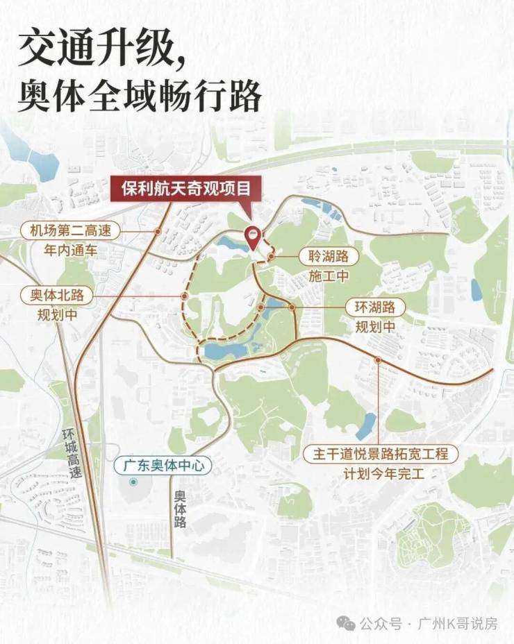 保利辰园·湖境坐落于天河智谷核心区,这里是天河区规划发展的“双核”之一——中央科创区(CTD),其战略地位与“珠江新城+金融城”构成的中央商务区(CBD)并驾齐驱。未来,这里将承载起天河乃至广州的科创发展重任,形成强大的产业磁吸效应。目前,网易、小鹏等超2500家科技企业已在此聚集,汇聚超20万技术人才,一个汇聚高端产业与人才的“智谷”正在崛起。更令人振奋的是,第十五届全运会即将在2025年于广州举办,作为开幕式主会场的奥体中心,其所在的板块将迎来一场全方位的城市更新。天河区计划投资680亿元,实施80个道路项目,全面焕新城市界面。全运会的东风,将彻底激活区域发展潜能,让世界大观板块的基础设施、交通路网、公园绿化实现质的飞跃,成为广州下一个价值高地。