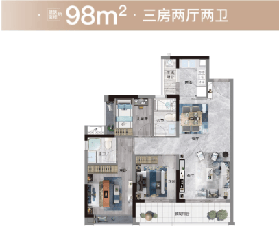 项目主推建面约98~143平米的三至五房户型,所有户型均为全南向设计,确保居住舒适度。特别是98平米的三房户型,拥有6.5米宽的大阳台,提供了极佳的观景体验。