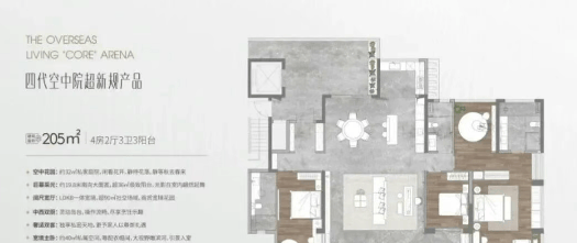 约205㎡户型:特色中西双厨设计、灵动岛台、约32㎡庭院、约19.8米南向大面宽、超36㎡阳台和超过90㎡的社交空间