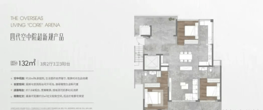 约132㎡户型:带有约20㎡庭院、约7.8米南向阳台和约55㎡社交空间