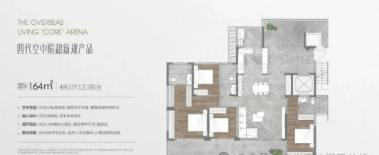 约164㎡户型:拥有约26㎡庭院、四开间朝南、约12.4米南向大阳台以及约4.3米开间主卧