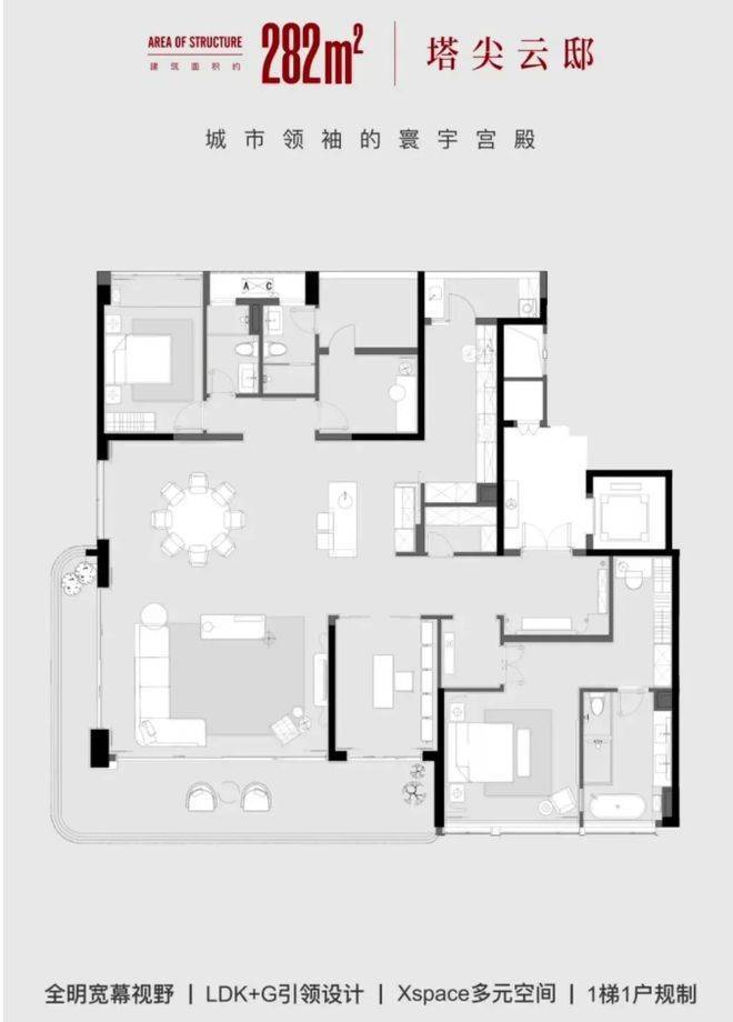 户型设计亮点满满。主打南向望江的板楼豪宅产品,以大面积大平层为主,像建面约 278 - 370㎡的稀缺环幕大平层,两梯两户或两梯三户配置,保障私密性和圈层纯粹性。130 - 139㎡户型也设计精巧,满足不同需求。