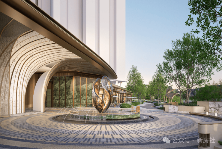 小区配套:社区主入口依托榕树灵感雕塑,打造酒店式环岛落客区,尊享四重归家礼序。