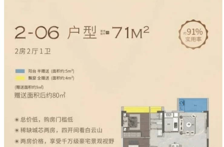 『保隆越禧府』主推建面约71-135㎡的二至四房户型,每户均采用全屋智能化高精装交标,包括新风系统、大金中央空调以及顶奢装修标准。特别值得一提的是,部分户型可以欣赏到白云山美景,增加了居住的舒适性和视觉享受。